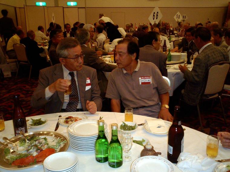 2006年7月14日(金) ホテル新潟にて 平成18年度青山同窓会が盛大に開催されました。 長谷川義明青山同窓会会長(61回)、篠田 昭新潟市長(75回)、栗林貞一東京青山同窓会会長(59回) の挨拶の後、新潟中学校校歌(玲瓏の天...)、新潟高校校歌(百里流れて...)を斉唱。 近藤 圓氏(38回=90歳)の乾杯にて開宴。 68会生は赤塚五十二、石橋輝樹、岡庭治行、片桐靖孝、加藤健一、加藤達雄、北村泰作、佐々木賢介、鈴木喜也、 関 隆二、高見 潔、田中康一、田中宣男、森田浩二、若松昌弘の15名が出席。 大懇親会が賑やかに挙行され、盛会の内にお開きとなりました。 その後、それぞれに2次会、帰宅、その他...と散会しました。 北村泰作記