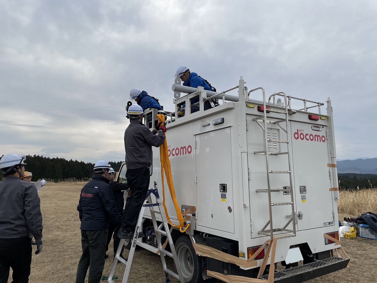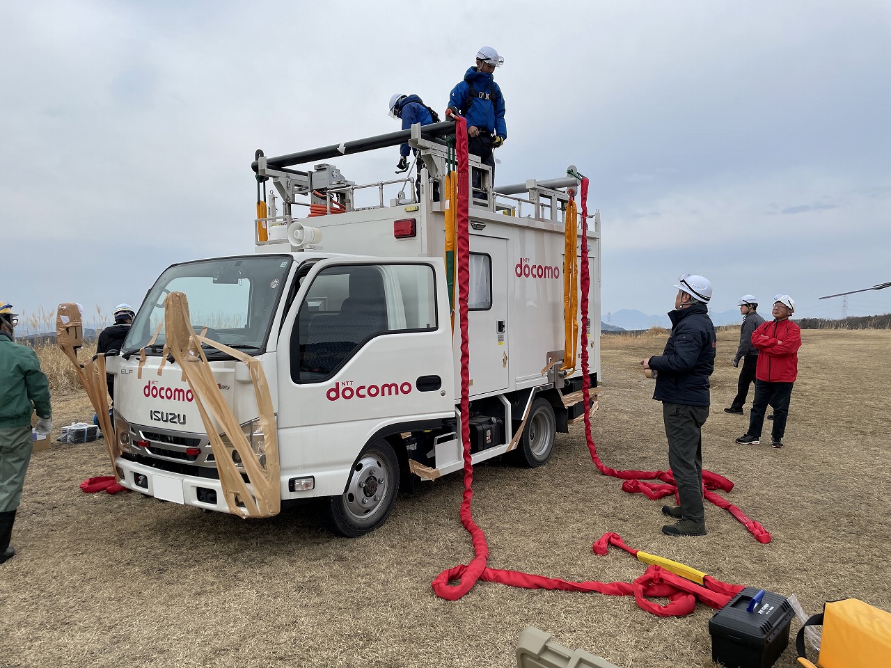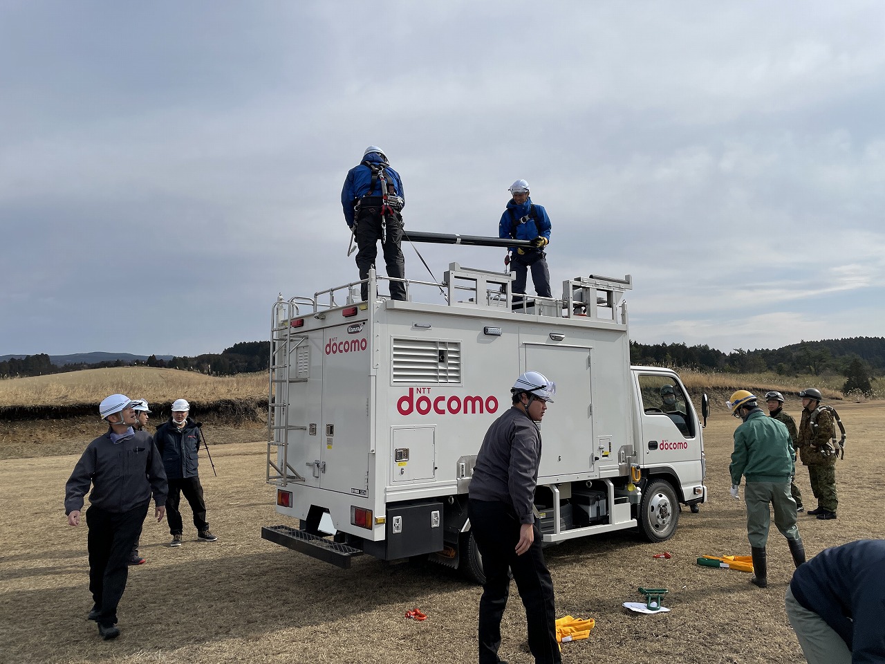 - 服部様/ドコモCS九州: 「空輸型多機能車」による、陸上自衛隊との共同訓練は今回が2年目であり、その有効性を実感しています。実際の災害復旧活動は時間との戦いといえます。その状況下で、陸上自衛隊といかにスムーズに連携を取り、迅速に対応するかが重要だと共同訓練を通じて、改めて実感しています。今後も継続して訓練を行うことでスキル向上と社員育成にも努めていきたいと思います。実際の運用はまだですが、災害地域の通信を早く復旧させるためにはこの車両が重要な役割を果たすと確信しています。訓練での気づきを次回の訓練に反映し、安全に遂行できるよう、引き続き御社と連携し対応していきたいと思います。今後とも宜しくお願い致します。