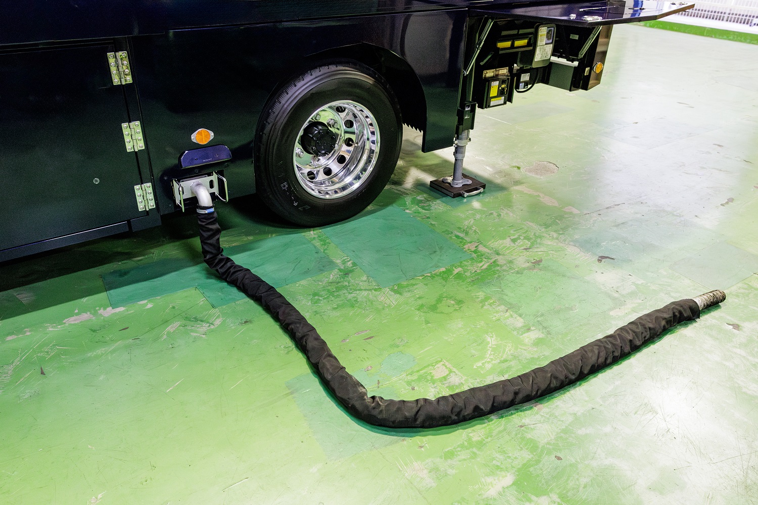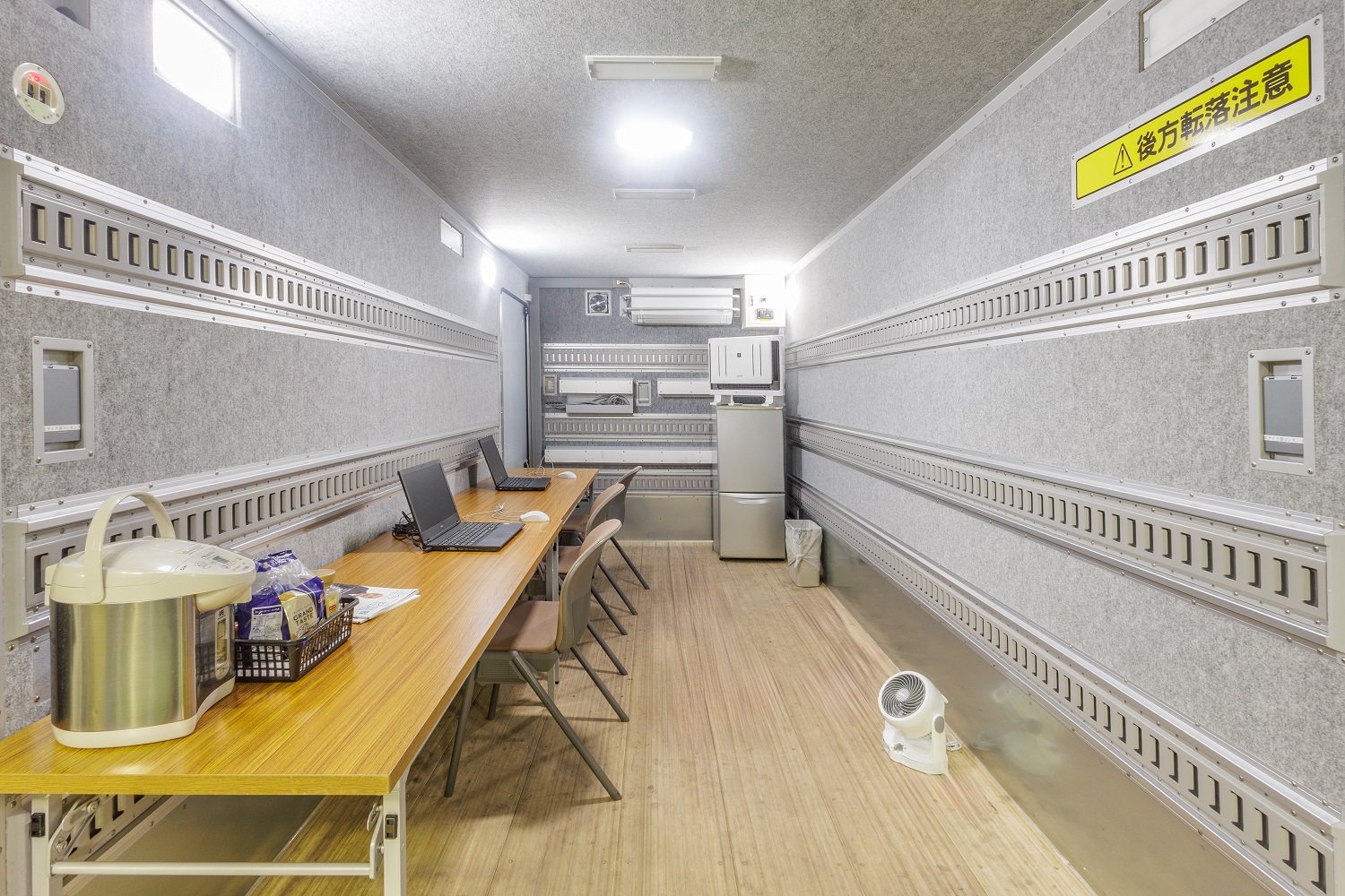 今回トラックに発電機を搭載して外部からの電気供給がなくても使えるトラックを制作しました。発電機を稼働させることにより、電源がなくてもトラックの庫内でエアコン・照明・コンセントが使用でき、イベント会場や工事現場などでの休憩室、事務所、お客様の用途に合わせた使い方が可能になりました。