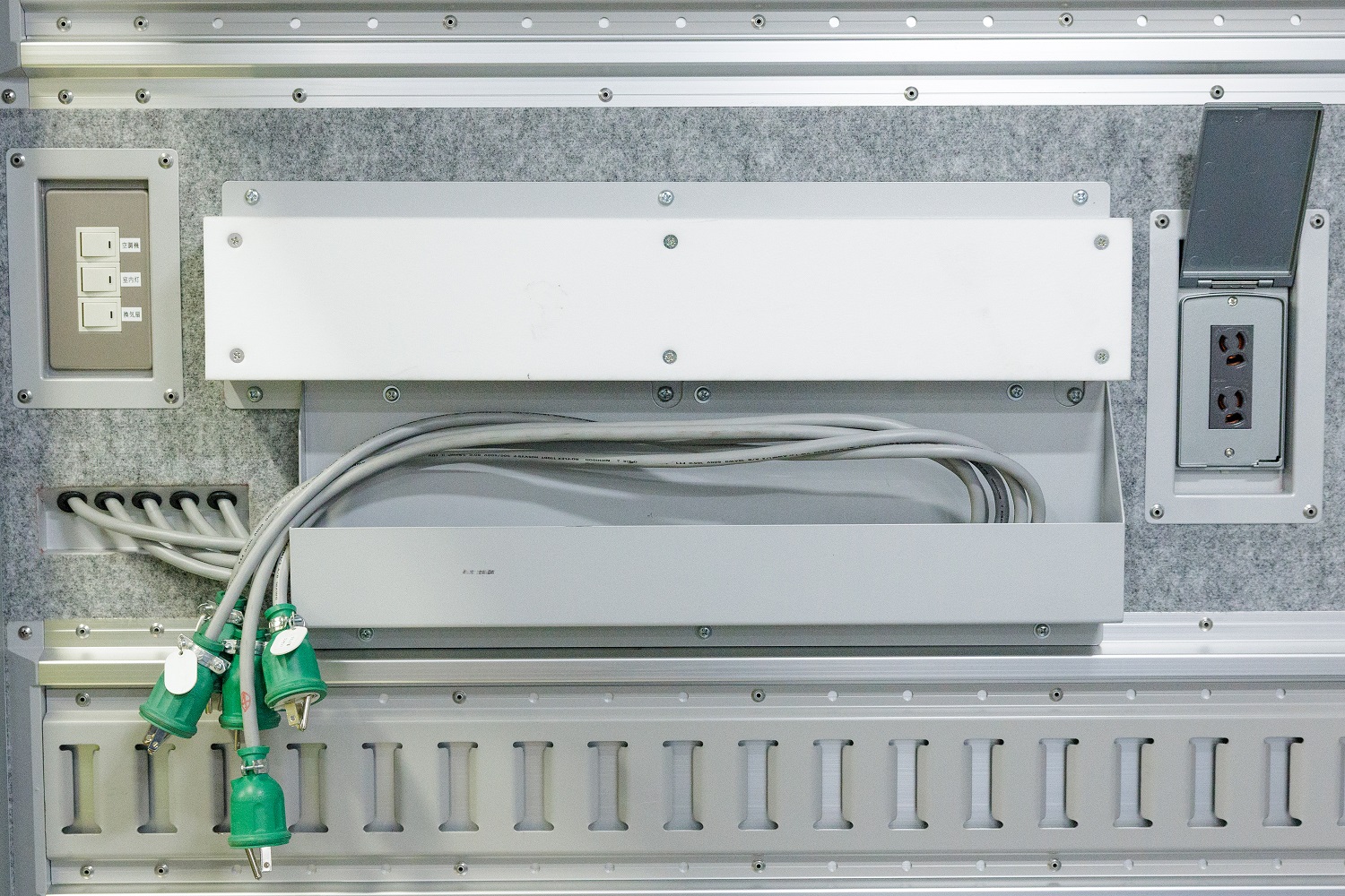 搭載発電機について発電機を稼働して頂くとエアコン、室内照明、コンセントの使用可能。 また発電機を使用しなくても外部からの電源供給があればエアコン、室内照明、コンセントも使用可能。