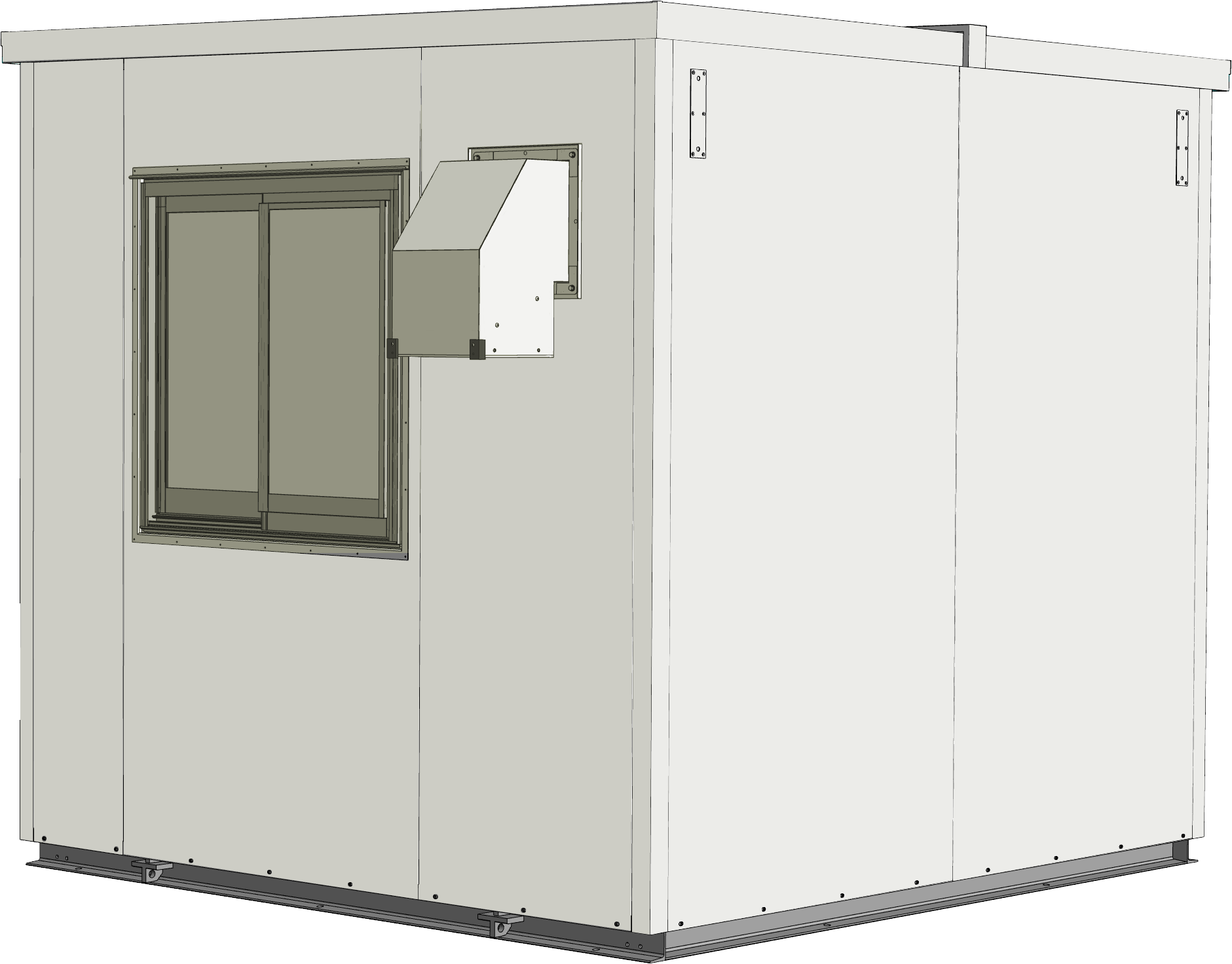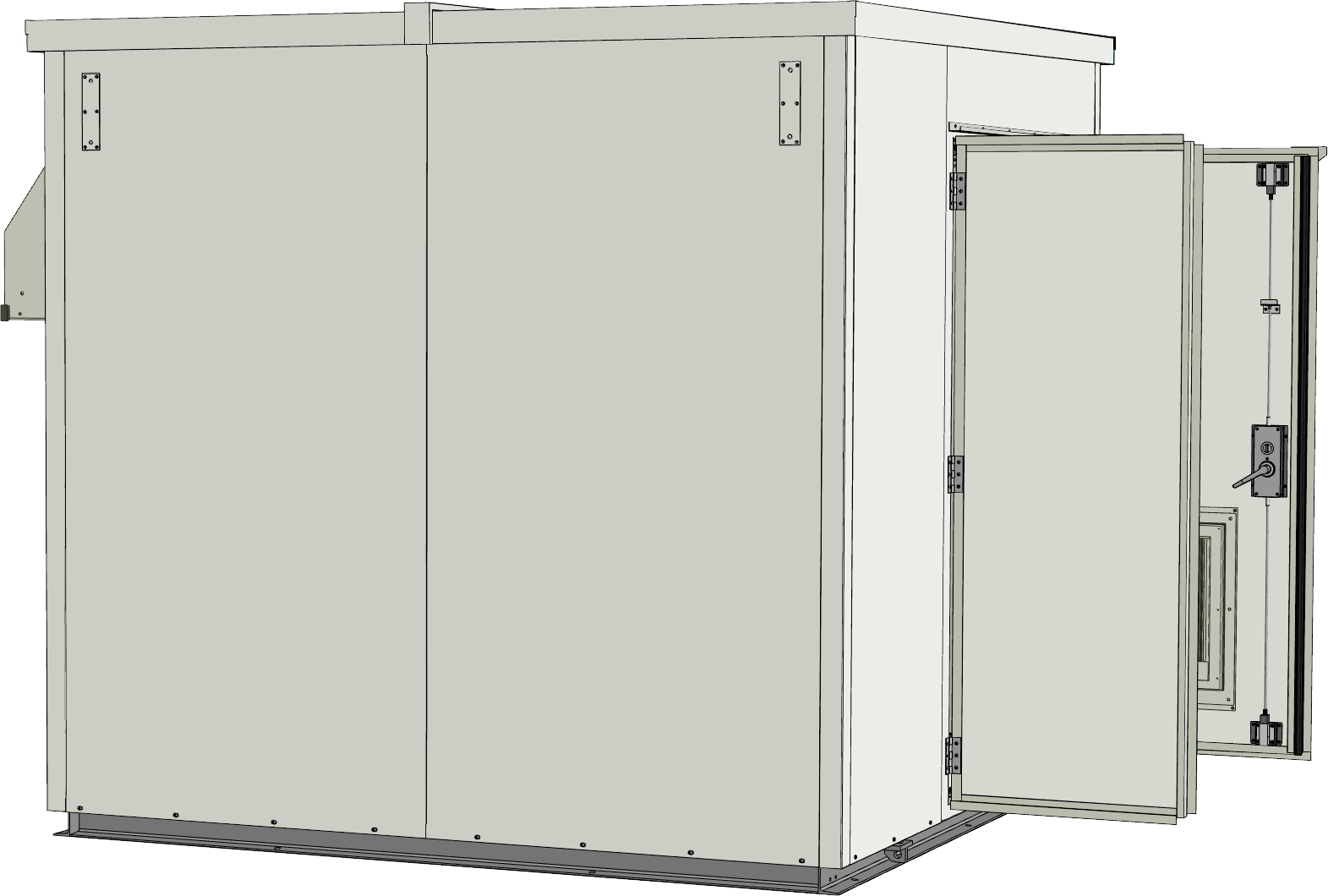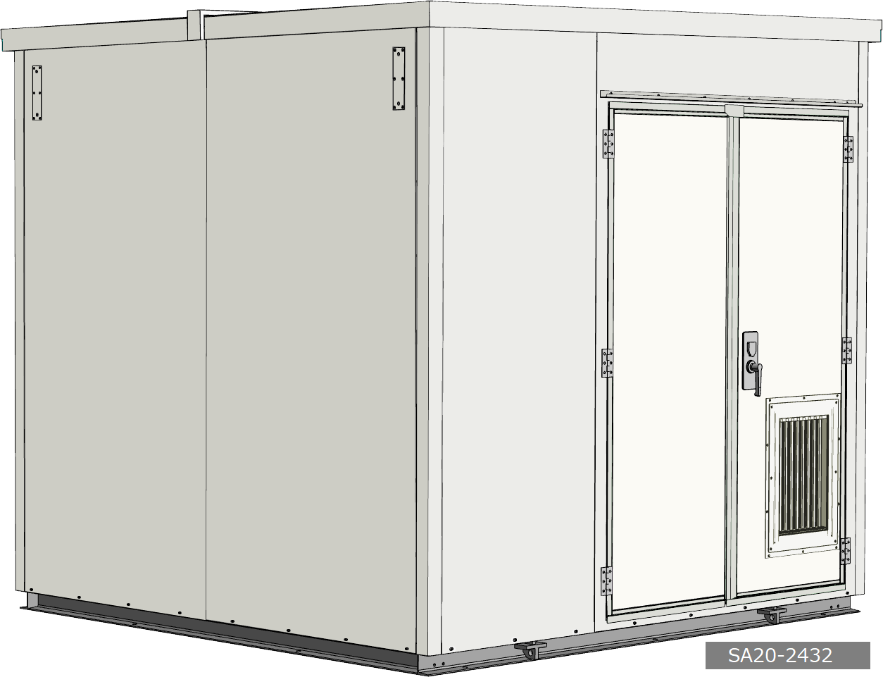 農業水利施設において、用水管理機器や制御・観測装置を安定して収容するために、高い耐震性と防水性能を備えた堅牢な局舎が求められました。そこで、2Mサイズの局舎を設計し、分電盤や空調機・換気設備を効率的に配置。防水ガラリや窓を配置し通気性と利便性を確保しました。さらに現地組立型工法を採用し、設置環境に応じた柔軟な施工を実現しています。