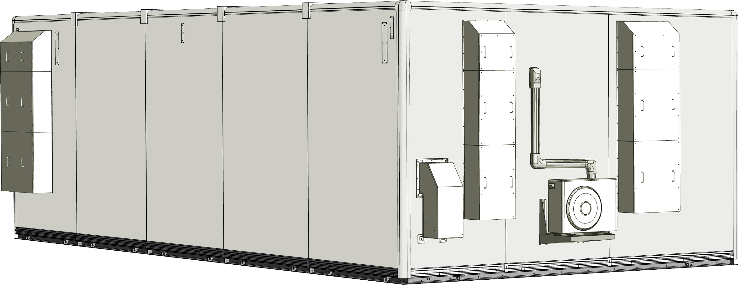鉄道事業者の継電連動機や大規模な通信・監視機器を安全に収容するため、信頼性の高い局舎が求められました。その要件に応え、高い耐震・防水性能を確保した10Mサイズの局舎を設計。ケーブルラックや換気設備、人感センサ付き外灯を備えることで利便性と安全性を両立しました。さらに靴脱ぎスペースやヒサシを設けて使いやすさを高め、耐塩害仕様の塗装により、沿岸部の環境にも対応。設置場所に合わせた現地組立型工法により大型の局舎でも柔軟かつ確実な施工を実現しています。