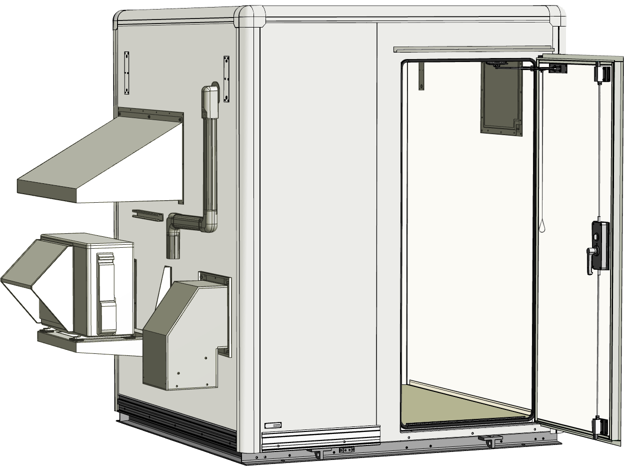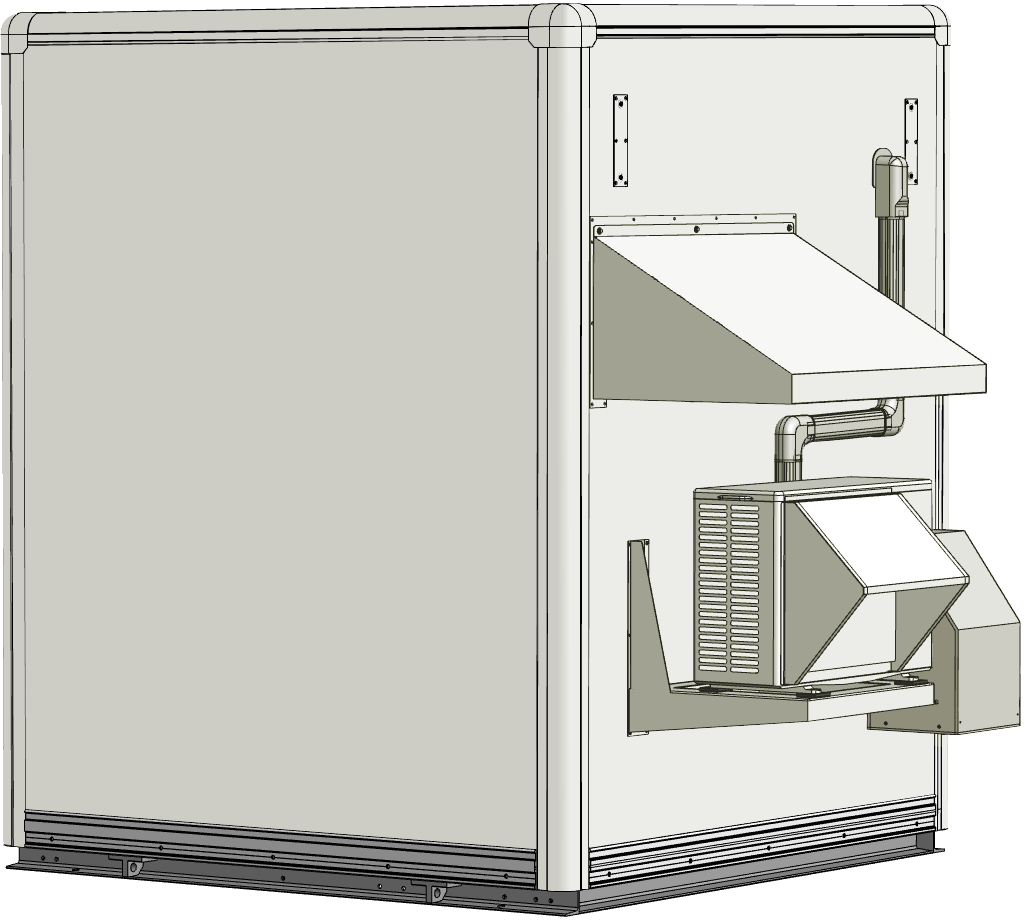 バイオマス発電システムの関連機器を安全かつ効率的に収容するため、設置環境に合わせたコンパクトな局舎が必要とされました。その要件に応えるため、2Mサイズの局舎を設計・製作。高い耐震・防水性能を確保し、分電盤や空調機、換気設備を配置しました。さらに、空調室外機の防雪ヒサシの取り付けや外面に耐候性の高いフッ素樹脂系塗料を採用し積雪と塩害に対する対策も実施。工場組立完成型工法を採用することで、短工期かつ高品質な設置を可能にしています。