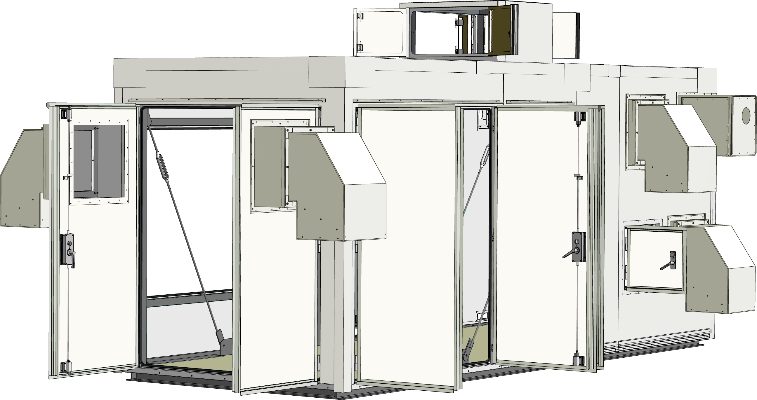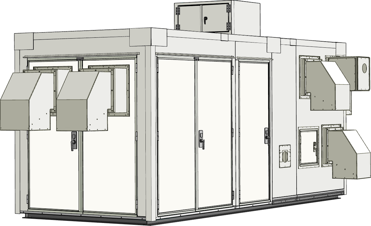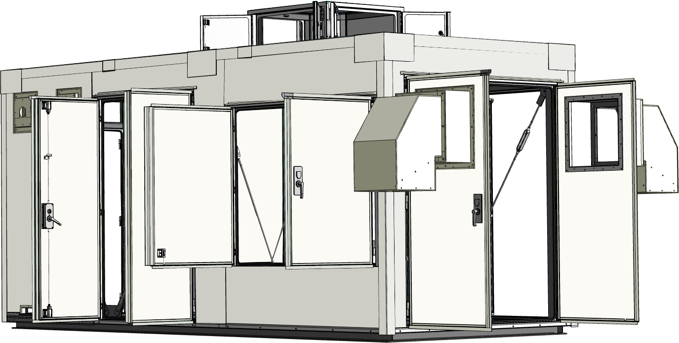 大気環境保全のため有害物質除害装置を安全に収容できる局舎が必要とされました。そこで、高い耐震・防水性能を確保した6Mサイズの局舎を設計・製作。ガス処理機器を安心して収容できる構造とし、換気設備や収容機器に合わせた各種用途の貫通口を設けて効率的な運用を支援しました。さらに現地組立型工法を採用することで、設置条件に応じた柔軟な施工を可能としています。