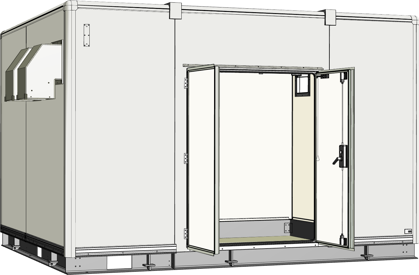 農業水利施設に設置する用水管理機器や制御・観測装置を安定して運用するために、積雪や地震に耐える高強度の局舎が求められました。そこで、防水・耐震性能を確保した積雪2.0mに対応した4M局舎を設計。床無し構造(コンクリート基礎を室内の床と兼用)にすることでコストダウンに貢献。現地組立型工法により環境に応じた柔軟な施工を実現しました。