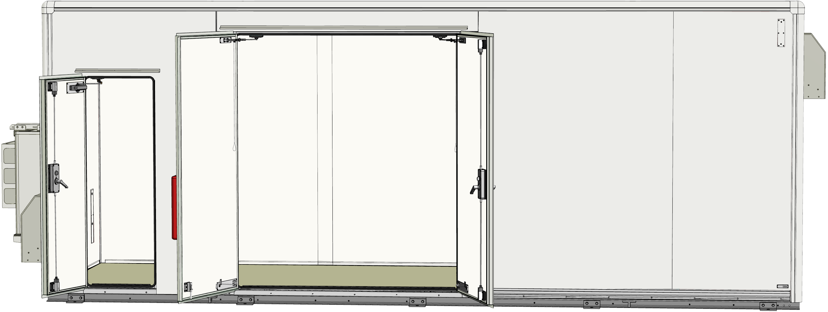 再生可能エネルギー等の発電所では、耐震・耐積雪条件を満たし監視制御装置を安全に収容できる局舎が必要とされました。そこで、高強度パネルと優れた防水性能により安心の室内環境を実現し、分電盤や換気設備、火災警報設備、空調機などを備えた7Mサイズの工場組立完成型の局舎を設計・製作。軽量・高気密・高断熱の特性を備えた高品質なソリューションを提供しています。