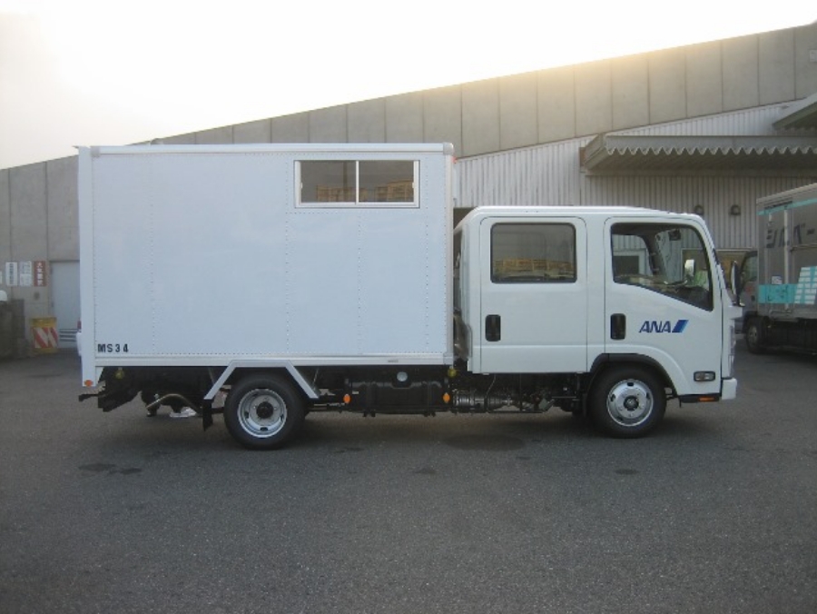 北村製作所では、営業担当が運ぶ物の種類だけでなく、作業順や積み込み・取り出しの流れ、置き場制約、作業人数まで具体的に確認し、運用に合った車両仕様に仕上げ、設計。空港業務に適した箱型専用ボデーにより地上作業の無駄を減らし、安全かつ確実な出発準備を支えます。