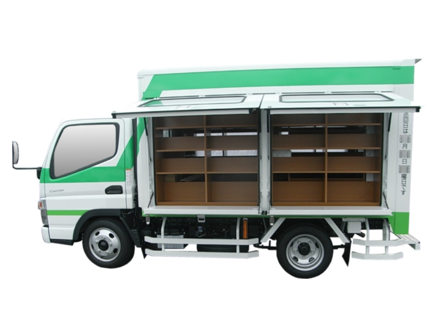 車両の構造に合わせて本を整理・陳列でき、数百冊から数千冊規模の図書を積載し、現地での貸出・返却業務に対応します。