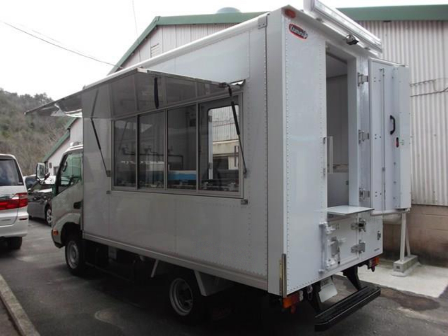 軽車両より積載・作業スペースに余裕があり、冷蔵冷凍・給排水・電源なども組み込みやすく、提供メニューや保管量を増やしやすいため、イベントやオフィス街、工場など需要のある場所へ柔軟に出店できます。