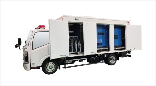 電源車や資機材搬送車、移動薬局車両(モバイルファーマシー)をはじめ、用途や現場ニーズに応じた製品仕様・特長をご確認いただけます。