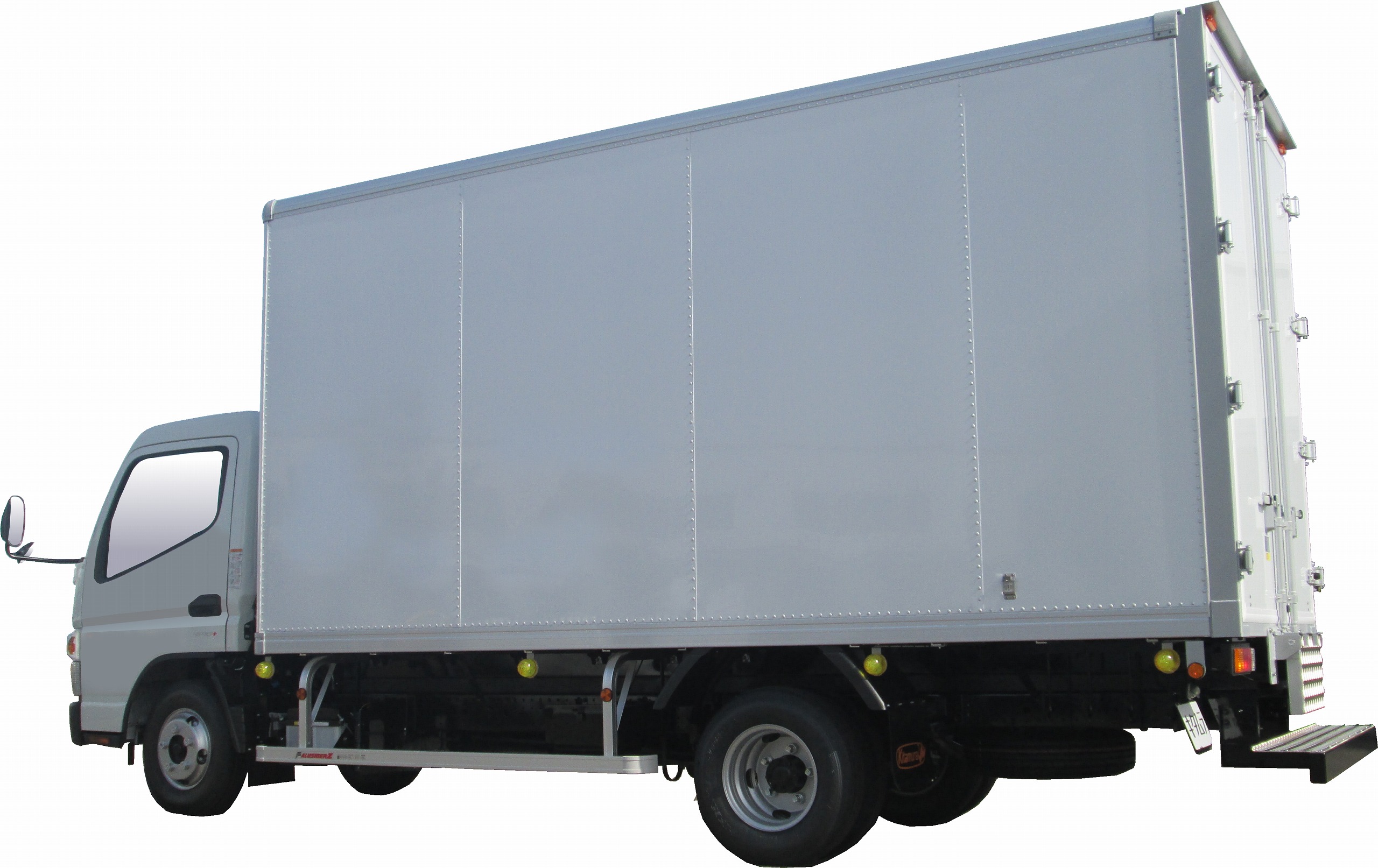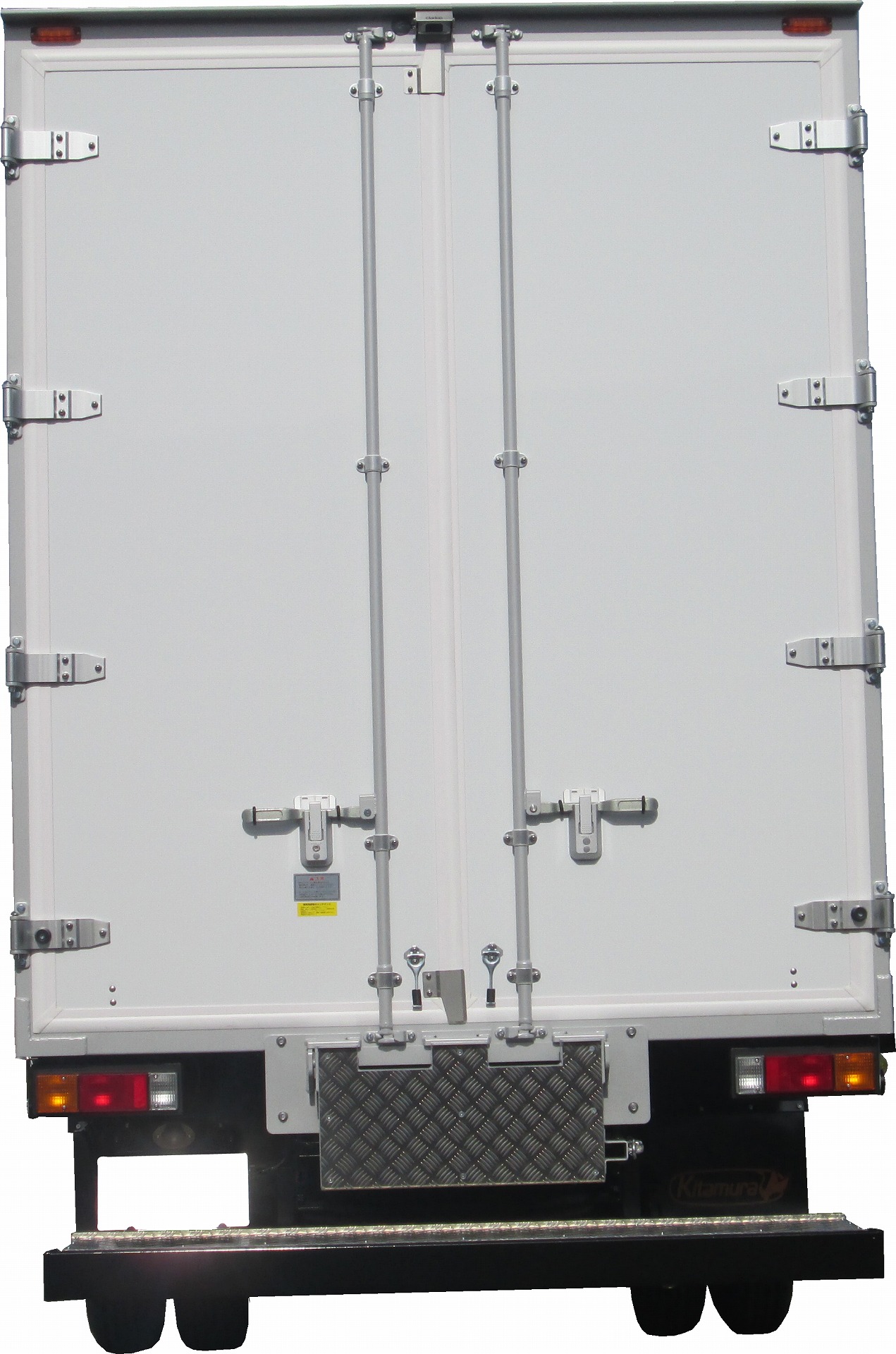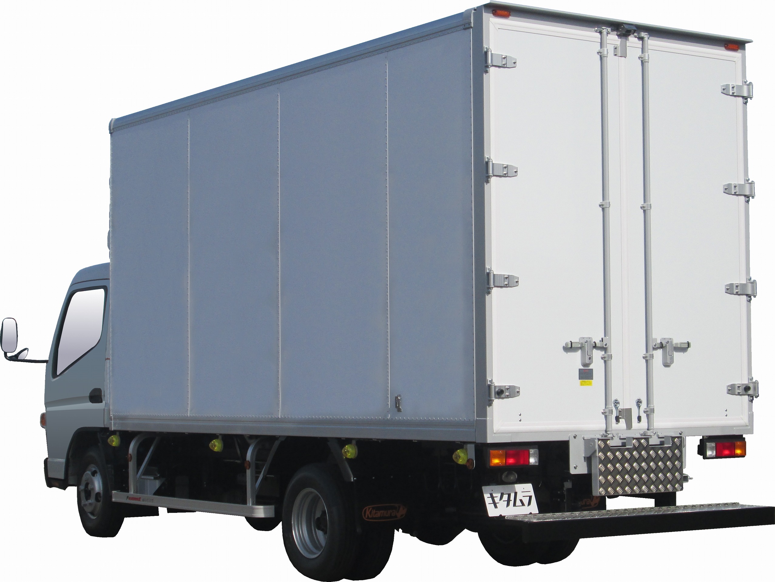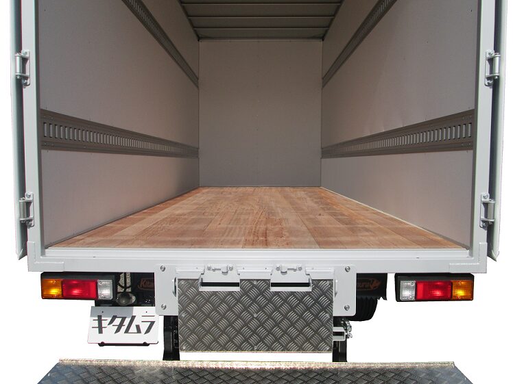 | 主要オプション | リア扉・2枚観音、リア作業台(引掛式・アルミ縞板付)、サイドバンパー・アルサイダー1段、床・アピトンフローリング、ラッシングレール・サイド2段、90度ストッパー/丸棒、車輪止め、バックカメラ/液晶ミラー5.6in、LEDサイドマーカー・4対 |