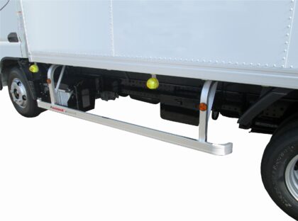 家具・家電の配送車では、積み下ろし作業の効率化と作業者の負担軽減が重要な課題となっていました。そこで本車両では、引掛式のリア作業台やラッシングレール2段、サイドバンパーなどを搭載し、荷扱いのしやすさと安定した積載を実現。バックカメラやLEDマーカーにより安全面も強化し、引越現場での効率的な作業をサポートしています。