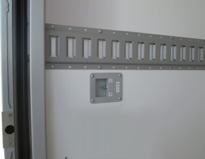 リネン製品の運搬では、重量物の積み下ろしや頻繁な荷扱いにより、作業負担と安全性の確保が課題となっていました。そこで当社は、安定した昇降を実現するオートレベルリフト(AL06)を採用し、キャスターストッパーやサイドストッパーを組み合わせることで、荷崩れ防止や安全な積載作業をサポートします。また、室内埋込型リモコンスイッチやラッシングレールなどの設備により、リネン配送に求められる効率性と安全性を両立する車両仕様となっています。