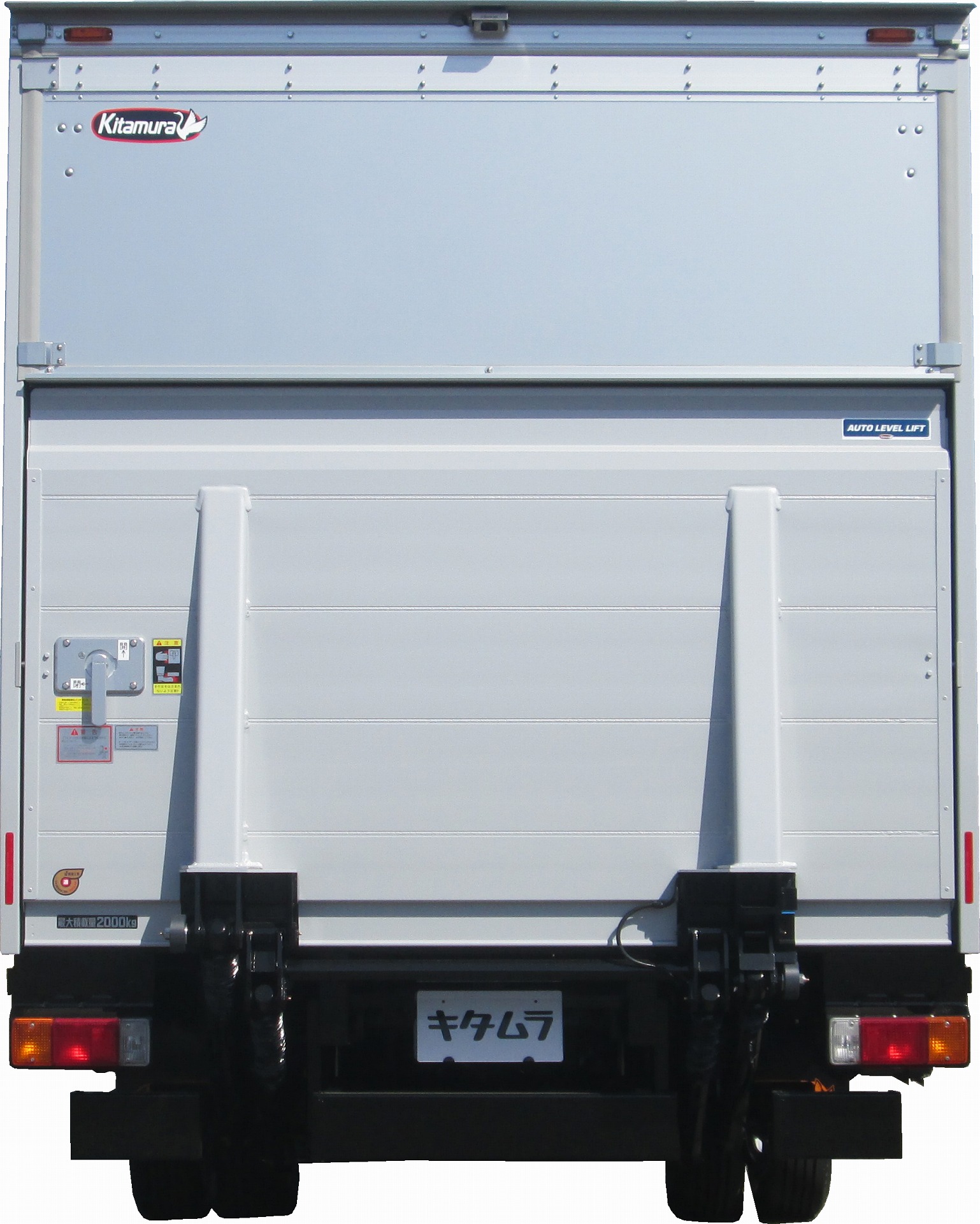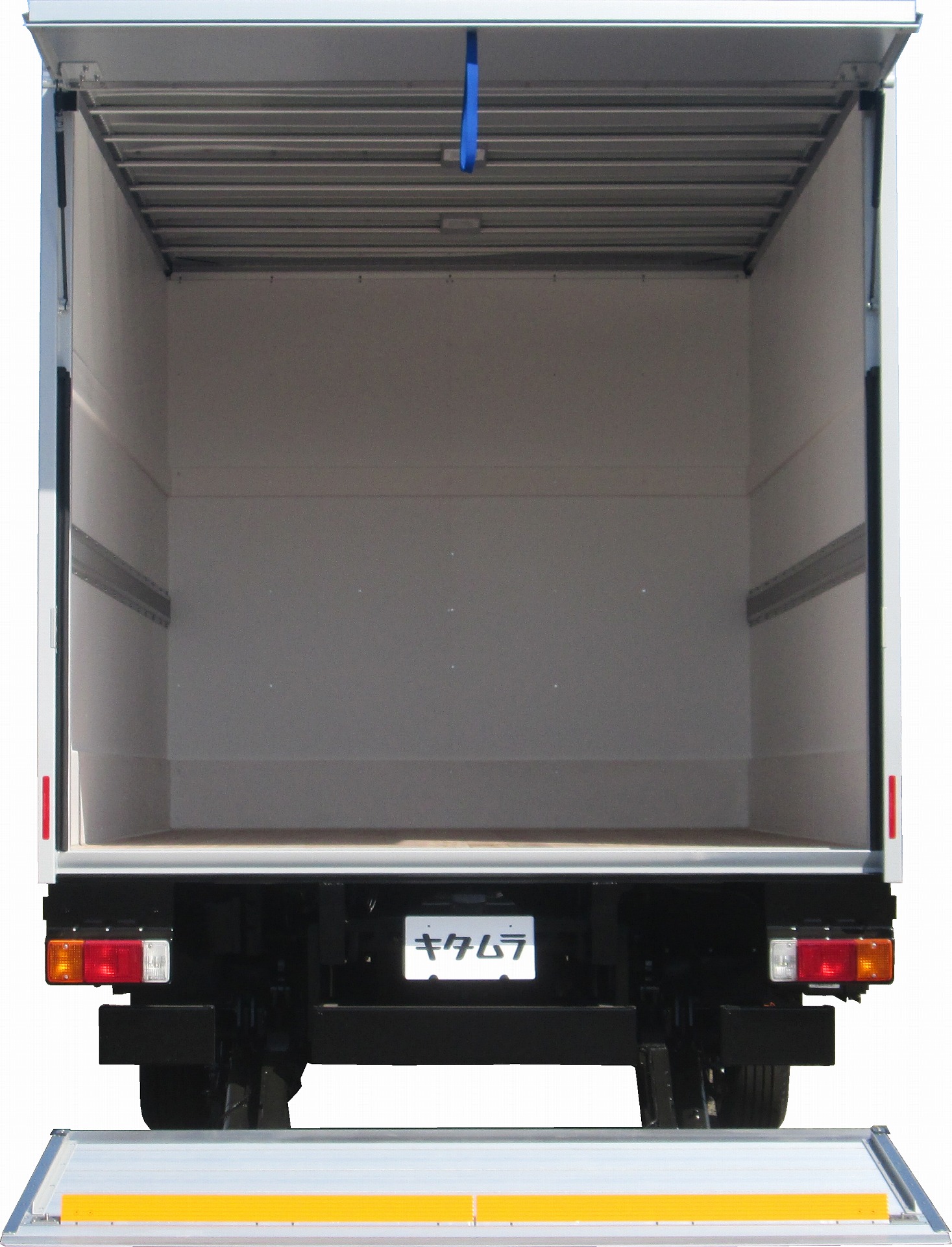 | 主要オプション | オートレベルリフト扉兼用式・能力650kg、キャスターストッパー/2分割タイプ、サイドストッパー/L材タイプ、リフト室内埋込型リモコンスイッチ、プロテクター・デュラウッド フロント2段/サイド2段、床・アピトンフローリング、ラッシングレール・サイド1段、バックカメラ/液晶ミラー7.0in |