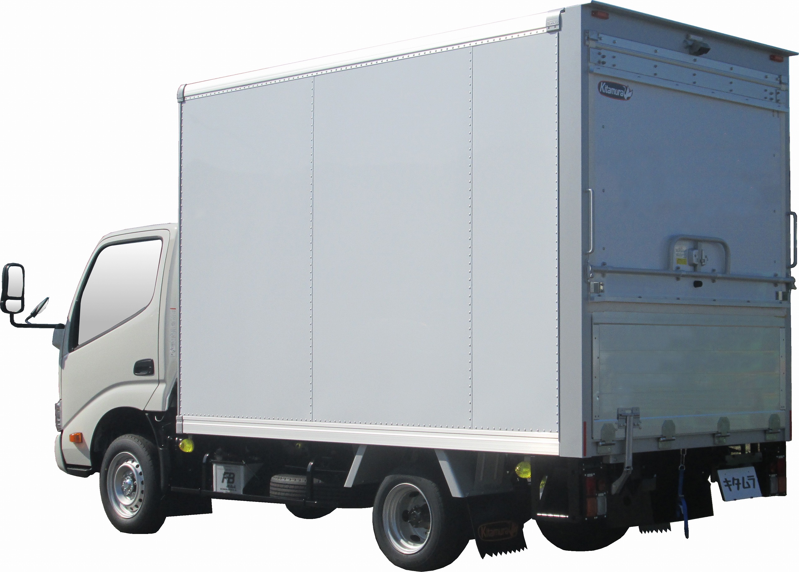 小口配送では、配送件数の多さやドライバーの頻繁な乗り降り、荷扱いの負担が課題でした。そこで、安全な乗り降りを支える足掛けステップと、積荷にやさしい内装を備えたカラーアルミバンを製作。作業性と安全性を高め、安定した運用を実現しました。