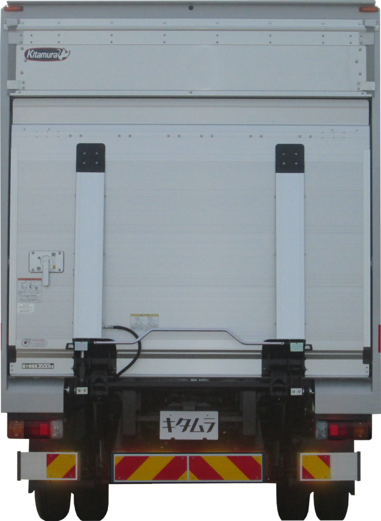 | 主要オプション | リフト/1トン能力、リアフェンダー/ステンレス製・Wタイヤ用、サイドバンパー/ステン丸パイプ1段、車輪止め/取手付・バンパー取付1セット、ラッシングレール/ステン露出・羽部1段/ステン埋込・サイドアオリ部1段、脱落防止アングル/4面、引上げフック/6ケ、水抜穴/前後1対、路肩灯/左右各1灯、後部反射器、バックカメラ、シャシ防錆塗装 |