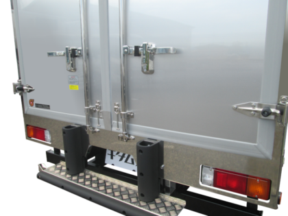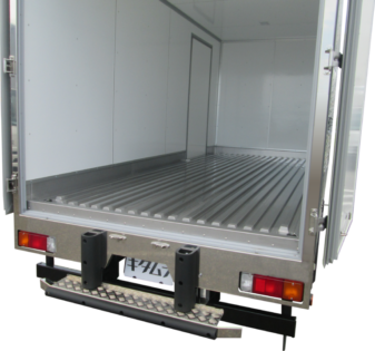 生鮮食品の店舗向け配送では、安心して扱える荷室環境と作業効率の向上が求められていました。当社は、FRP内装やステンレスキーストン床を採用し、衛生的な荷室を実現。ロックバースライド式サイド扉により乗降や荷役をスムーズにし、またLED照明類やバックカメラによる安全性も強化。日々の店舗配送に適した車両環境を提供しました。