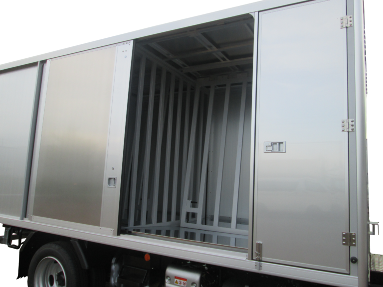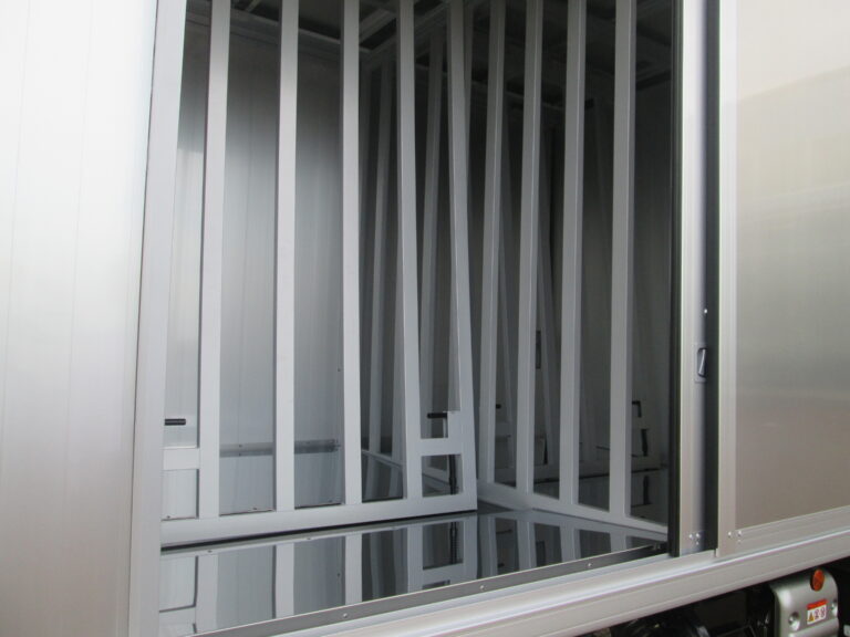自動販売機の商品補充では、小口配送が多く頻繁な乗り降りや荷室へのアクセスが必要となり、作業効率と安全性の両立が課題となっていました。当社は、ボトルカー専用の室内構成や前丁番扉+引戸のサイドドアにより、商品の出し入れをスムーズにし、作業者の負担軽減を実現。さらに足掛けステップやネコ車収納、ドライブレコーダー付バックカメラなどのオプションを組み合わせ、ルート配送業務に求められる安全性・操作性の向上に貢献しています。