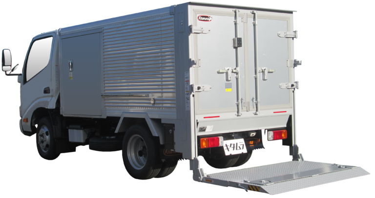 | 主要オプション | 左サイド扉/ワンタッチスライド式、右サイド扉/ワンタッチスライド式、ペットリフト、キャスターストッパー回転式ロック/回り止め取付、リフトテーブル先端/ランプ板取付、渡し板取付、ラッシングレール/SS埋込・フロント2段・サイド1段、ドライブレコーダー付バックカメラ |