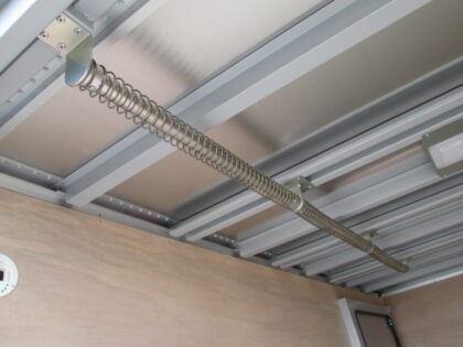 リネン製品やユニフォームをハンガーに吊るしたまま輸送するにあたり、荷崩れ防止と積み降ろし時の安全性・作業効率の両立が課題でした。当社は、ステンレス製スプリング式ハンガーパイプやロンリウム床、ワンタッチスライド式サイドドア、四輪台車格納ボックス、扉開閉確認警報装置を備えたアルミバンを製作。衣類を吊ったまま安定して搬送できるうえ、安全対策強化と作業負担の軽減に寄与しています。