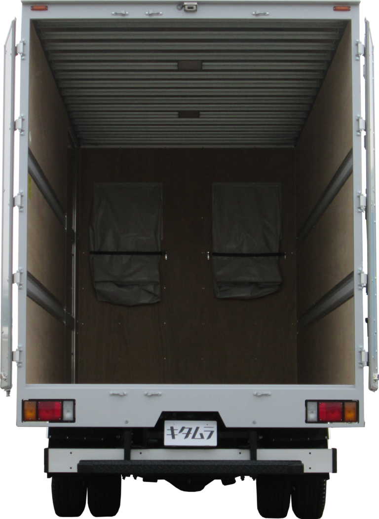| 主要オプション | ベントドア/フロント・左右1ケ(上丁番式)、梯子/フロント・左右1ケ、左サイド扉/片開き式・開口幅変更、リア門構/テールランプ埋込、ラッシングレール/I型SS埋込・サイド2段、サイドバンパー/アルサイダー1段、サイドステップ/アルミ縞板、リアフェンダー/ステンレス製・Wタイヤ用、車輪止め/取手付・バンパー取付1セット、サイドマーカー・3対 |