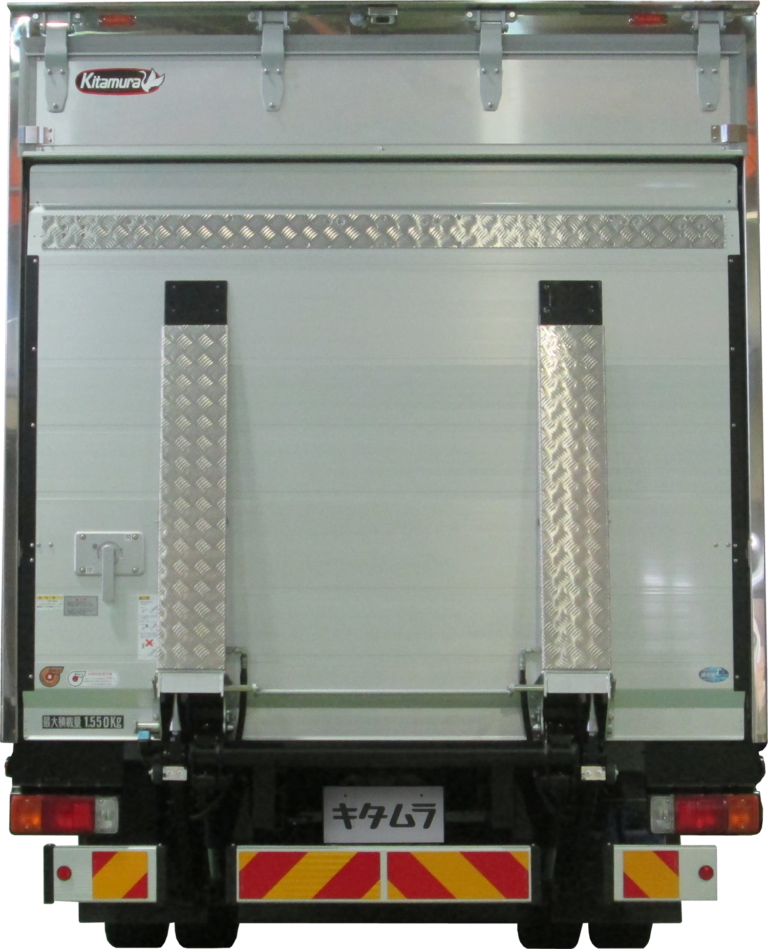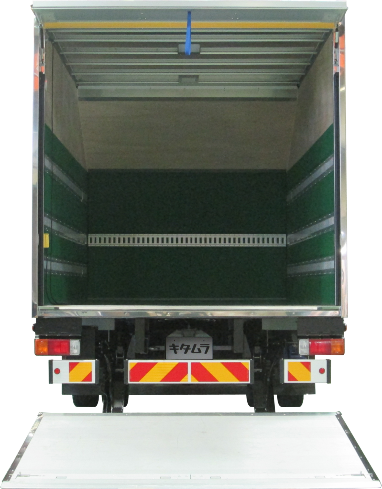 | 主要オプション | リフト/1トン能力・キャスターストッパー付き、ラッシングレール/アルミ埋込・フロント1段・サイド3段、サイドバンパー/丸棒式2段、リアフェンダー/ステンレス製・Wタイヤ用、泥除けフラップ/EVAシート黒色・振れ止め付、車輪止め、チェーン掛け/左取付、サイドマーカー・4対、バックカメラ/液晶ミラー7.0in・シャッター有り、シャシ防錆塗装、キャブバック部クレーン付特殊仕様、拡幅式アウトリガー付属4箇所 |