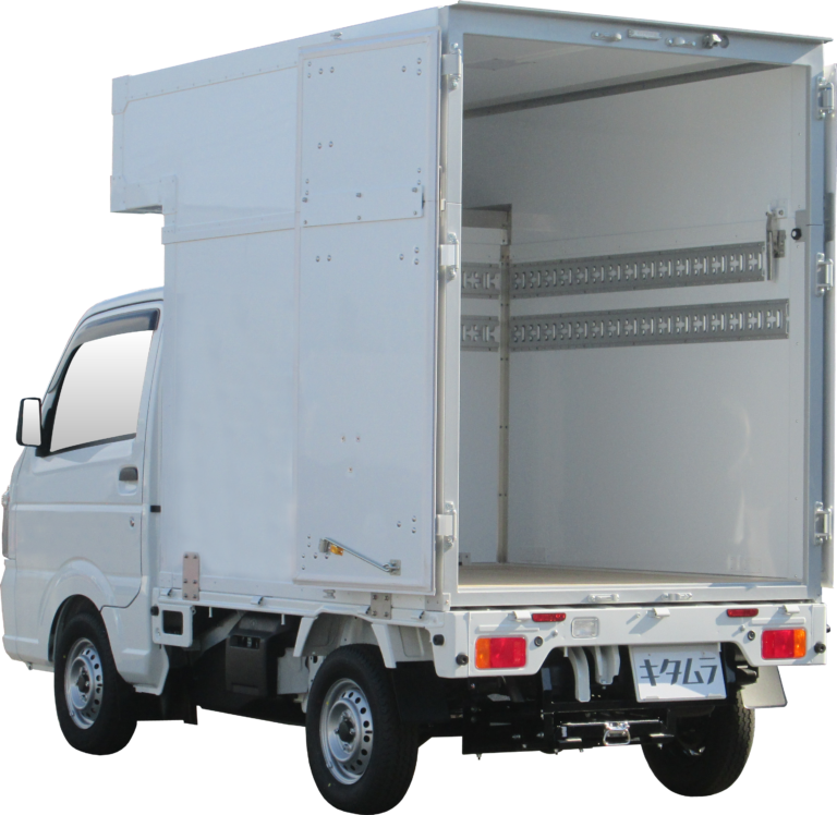 一般消費者向け商品の宅配では、小口配送が多く乗り降りや荷扱いの回数が増えるため、ドライバーの負担軽減と安全確保が求められていました。そこで当社は、軽トラック向けにリヤワンタッチスライド式ステップを設け、スムーズな乗り降りをサポート。ラッシングレールによる荷崩れ防止とバックカメラによる後方確認機能を組み合わせることで、宅配業務における作業性と安全性の両立を図っています。