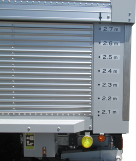 全高表示ステッカー(矢印と一致した数字がボデー高さを示す)