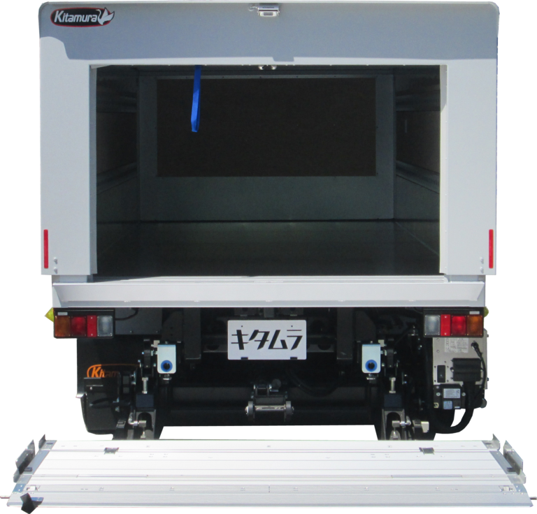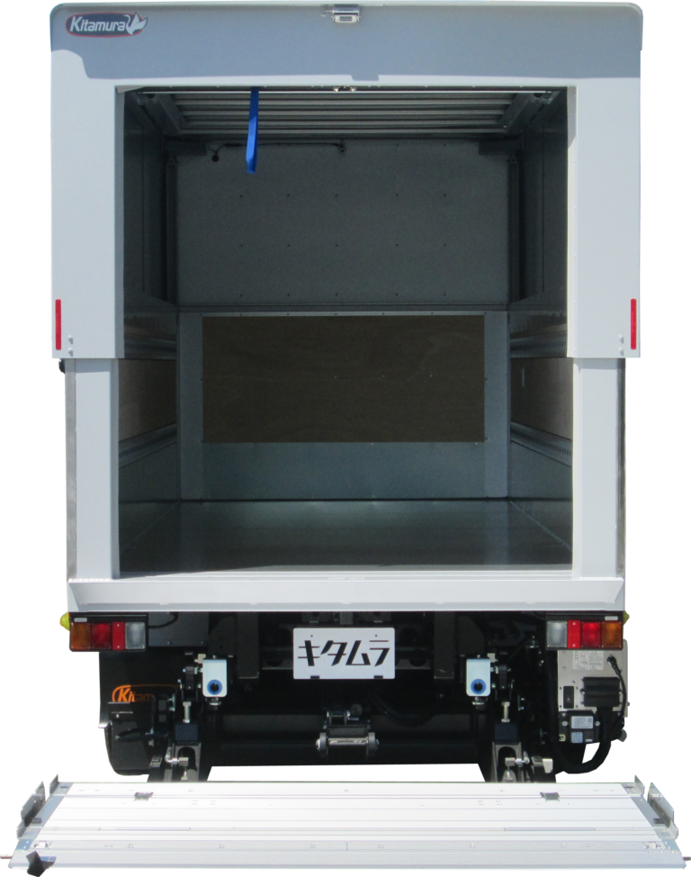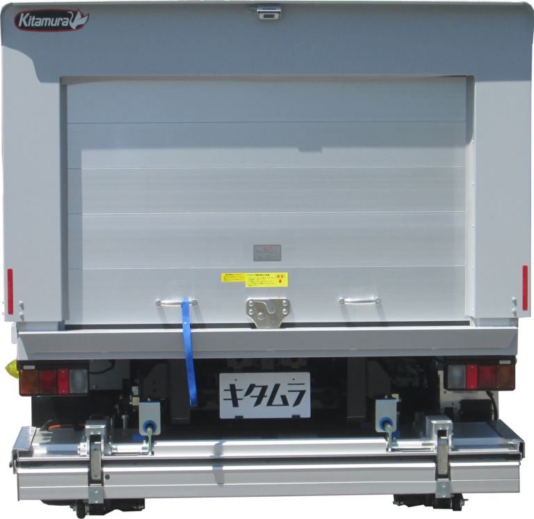 | 主要オプション | 全高表示ステッカー(位置:ボデーフロントパネル、リヤ門構左側面)、スライドフォルダーリフト・能力1000kg、腰板亜鉛1.6t/フロント・サイド、ラッシングレール/スチール十字埋込/サイド2段、バックカメラ/液晶ミラー6.1in・シャッター有り、車輪止め/取手付・バンパー取付1セット、LEDサイドマーカー・3対 |