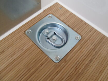 | 主要オプション | ラッシングレール/I+I型アルミ埋込・フロント2段・サイド2段、床フック/φ16×4ケ・φ8×2ケ、台車格納装置/室内左側後壁取付、車輪止め/キャブバック右側取付、バックカメラ取付 |