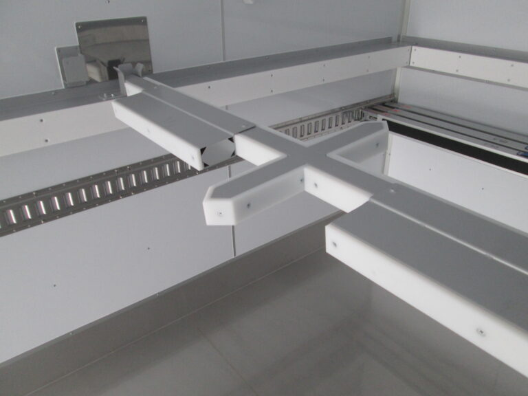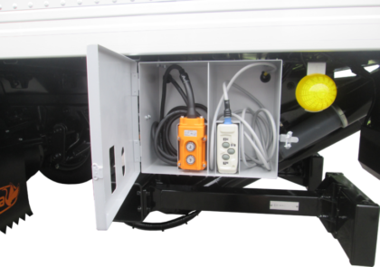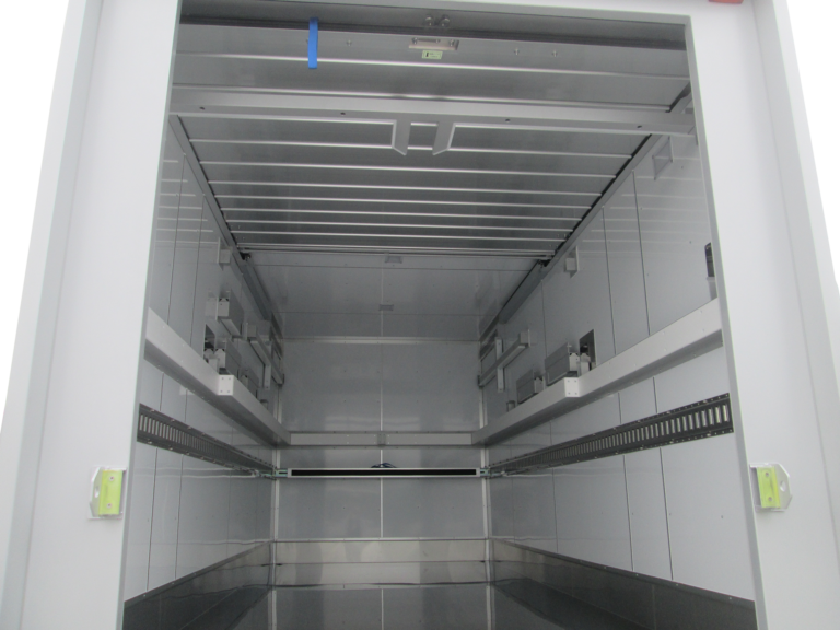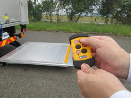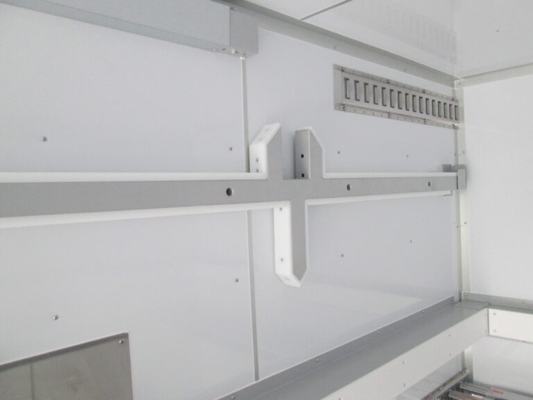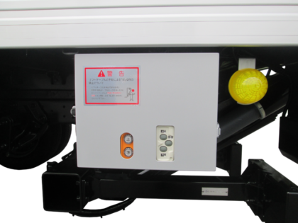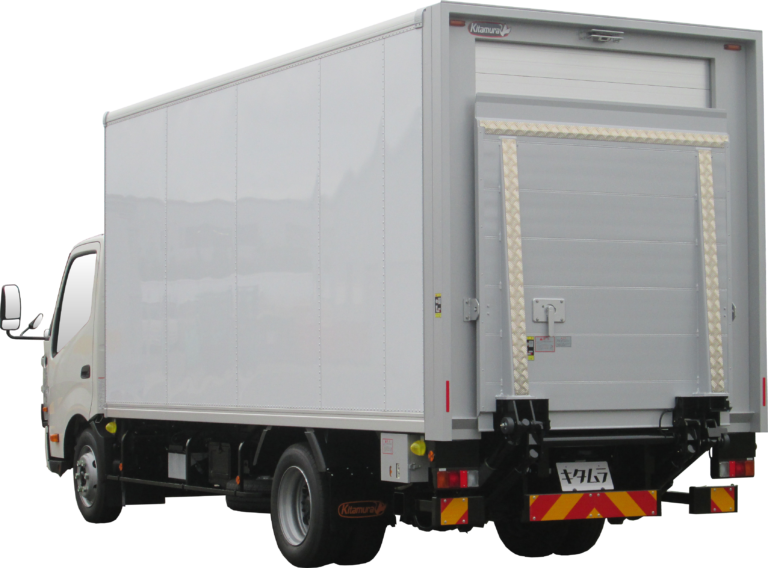学校給食用コンテナの配送では、重量物の積み降ろしによる負担や、運搬中のコンテナの揺れ・転倒防止といった安全面の課題がありました。当社は、オートレベルリフト(AL10)を採用し、安定した昇降作業を実現。さらに、6ヶ積みの仕切りや遊び止め、クッション付きラッシングビームなどを組み合わせることで荷崩れを抑制しました。水抜き穴やステン床、バックカメラ・警報装置といった装備により、衛生面と安全性を高めた給食配送車となっています。