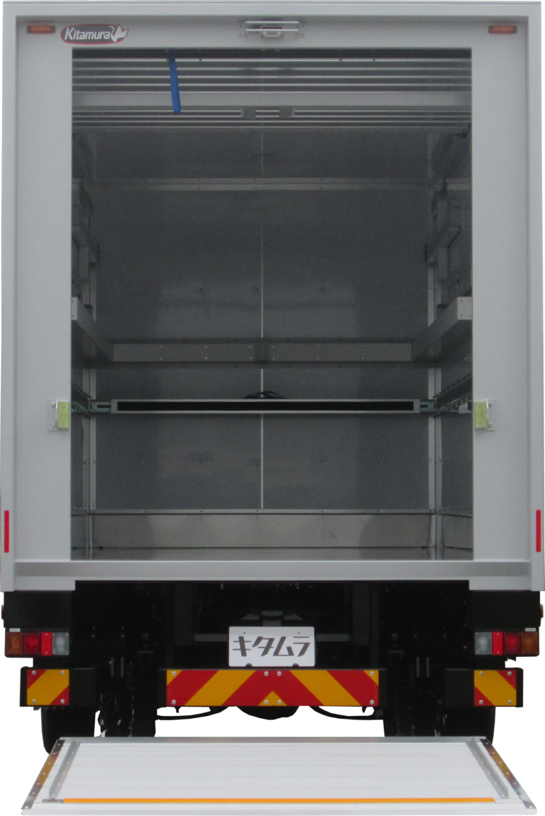 | 主要オプション | 給食コンテナ仕切6ケ積、給食コンテナ遊び止め、ラッシングレール/I型ステン露出・サイド1段、ラッシングビーム/3本・両面クッション張り、ラッシングビーム収納用レール/庫内上部取付、室温計取付(左壁後方上部)、水抜き穴/前2ケ、水抜き穴用ゴム栓・1対、オートレベルリフト後立掛式・能力1000kg、サイドストッパー/L材タイプ、リフトテーブル延長、リフト裏面キズ防止アルミ縞板/縦骨・先端、室外リモコンボックス、ワイヤレスリモコン、バックカメラ/液晶ミラー7.0in・シャッター有り、バックカメラ保護棒、音声アラーム/左折・バック、リアドア扉開閉確認警報装置・近接+Pランプ+ブザー、ドックシェルター用リヤ門構プロテクター、車輪止め/取手付・バンパー取付1セット、後部大型反射板 |