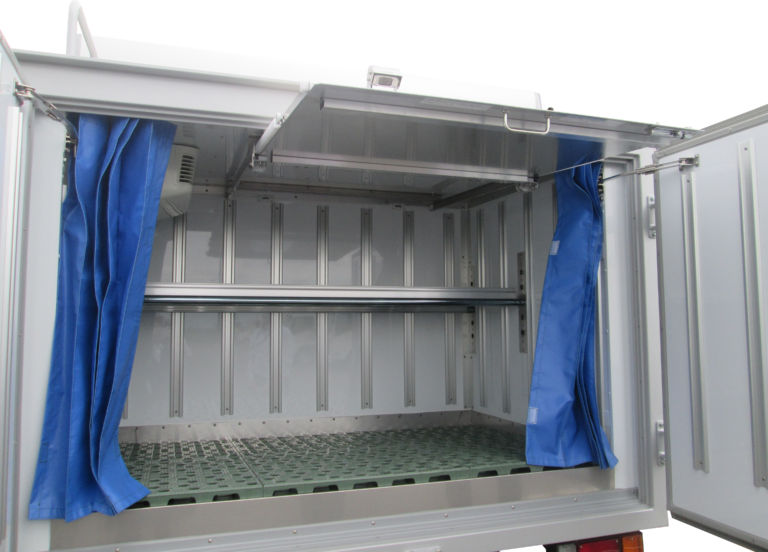 | 主要オプション | 後室冷凍機取付、後室内板断熱入り保冷仕様、後室保冷用カーテン取付(着脱可)、雨よけ板、110度ストッパー、バックカメラ/液晶モニター5.6in、金庫(助手席足元取付)、四輪台車/格納ボックス |