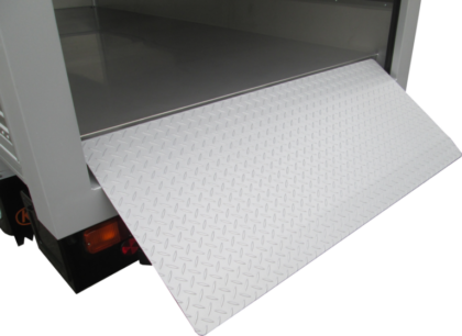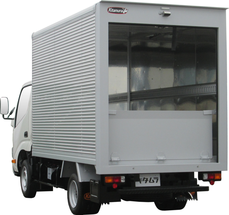 学校給食用コンテナの配送では、荷姿が安定しにくく、積み降ろし時の転倒や挟み込みといった安全面の課題がありました。また、施設側の受け渡し環境に合わせて、安全に移動できる動線確保も求められていました。当社は、滑りにくいスチール縞板の渡し板を装備し、台車の移動を安全にサポート。竹床材+ステン上張りの耐久床、水抜き穴、ラッシングレールの配置により衛生性や固定性も向上。バックカメラや音声アラームも備え、安全性を高めた給食配送車を実現しました。