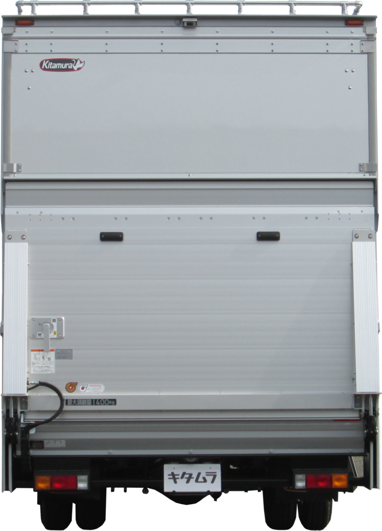 | 主要オプション | 梯子/フロント・左右各1ケ、天井ステンパイプルーフ欄干取付、天井外板滑り止めテープ貼り、ラッシングレール/I型SS埋込・フロント2段・サイド2段、ロープフック/サイド埋込/φ8×2ケ、リフト操作スイッチ格納ボックス、車輪止め/取手付・バンパー取付1セット、ステンレス製工具箱、路肩灯・左右各1灯、バックカメラ/液晶ミラー7.0in |